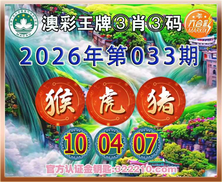 主题: 033期:金钥匙高手【澳彩王牌🔥③肖③码】正版澳彩