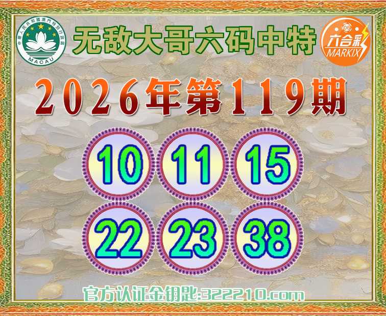 119期: 🌳《无敌大哥》 🌳六码中特🌳【10.11.15.22.23.38】开:11