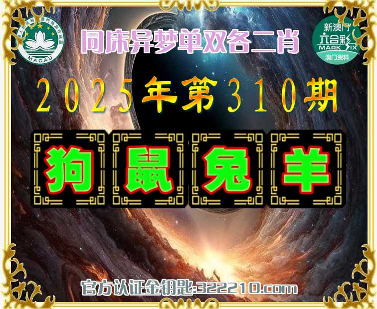主题: 310期:金钥匙高手【同床异梦🔥单双各二肖】正版澳彩